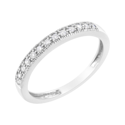 IGI Certified 1/7 Cttw Diamond 10K White Gold Prong Set Beaded Milgrain Band Style Ring (I-J Color, I2-I3 Clarity)
